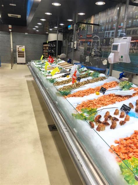 Dommage qu'il faille penser à prendre un ticket avant de passer les barrières car vous perdez 1 ou 2 tours au moins ! Un bon service et un très large choix Pour poissons et fruits de mer Cest ici qu'il faut venir
