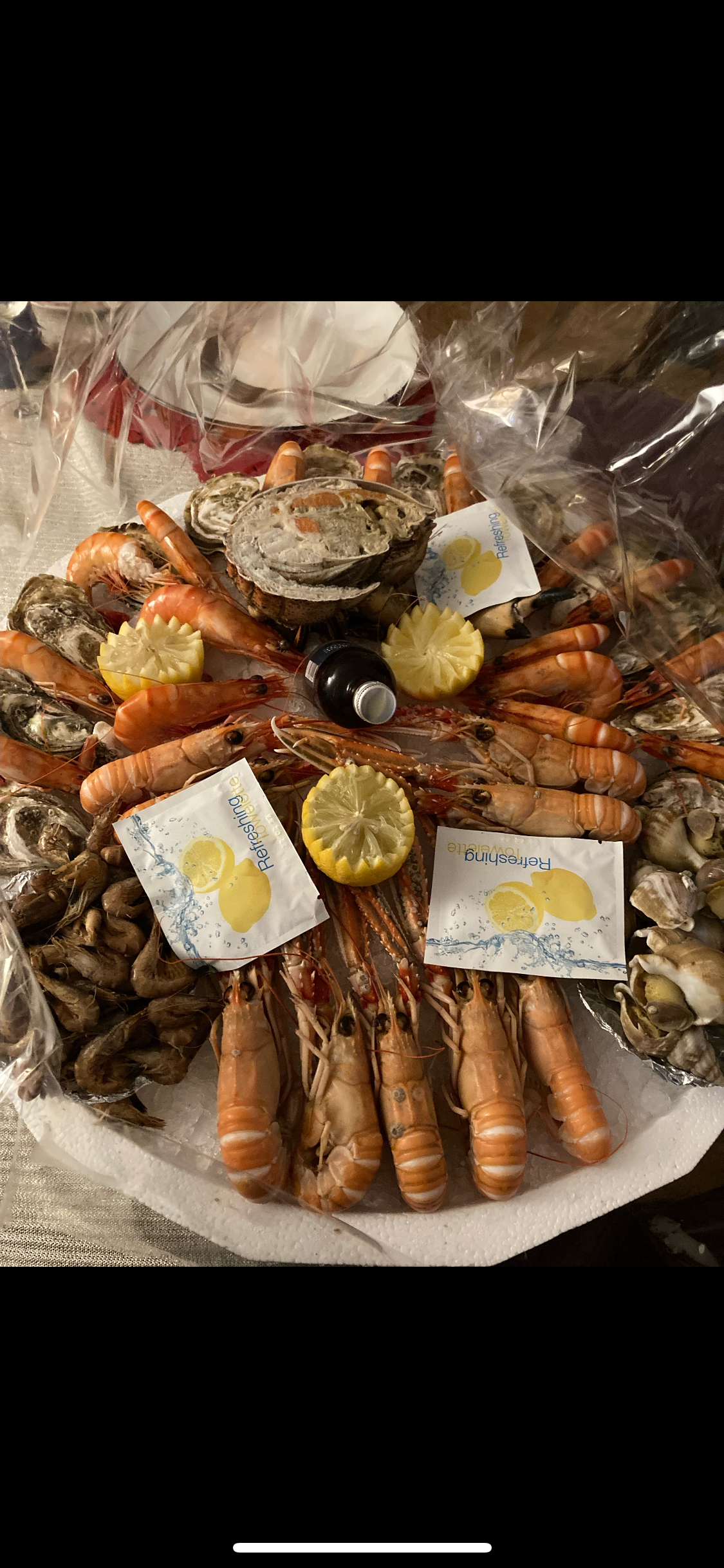 Posté le 25/12/2023 à 10:58"Un conseil, ne faites pas des commandes si vous pouvez pas les honorer à l’heure.(1h1/2 d’attente) Je soupçonne que le tourteau était surgelé car aucun goût et j’ai jeté 2 huîtres mortes sur 12 de plus, très mal ouvertes donc pas plaisant en bouche! Je ne recommande pas pour les fêtes"